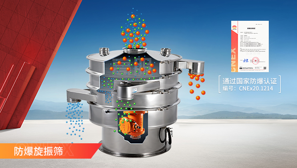 防爆振動篩適用易燃易爆的物料篩分作業,防爆標志為Ex d IIB T4 Gb/Ex tD A21 IP65 T130℃,適用于食品行業、醫藥行業、化工行業、金屬粉末行業、鋰電行業等行業。
