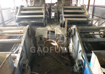 廣西柳州某選廠,在重晶石的選礦中,因重晶石含泥量高,需先用螺旋分離機加水攪拌洗泥,再把成品重晶石和泥水分開,用螺旋分離機選礦的缺點是,只能把大顆粒的重晶石礦選出,有大約20%的細礦都隨泥水流走,使重晶石礦不能充分回收,造成資源浪費。后來經設備更新,在螺旋分離機后加裝脫水篩,使流出的泥水再用脫水篩二次選礦 ...