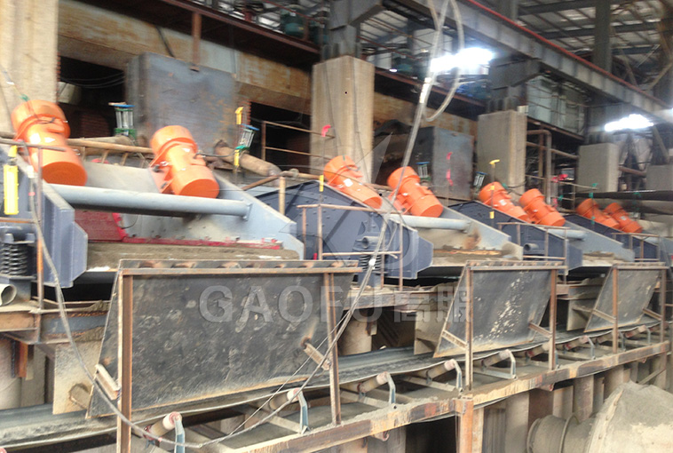 福建泉州某鉀長石選礦廠,在鉀長石粉的生產中,工藝為球磨機出料后進螺旋分離機進行渣水分離,但是用螺旋分離機進行渣水分離后成品料含水量過高,不能干堆。后來經過考察和實驗后,選用我司的振動脫水篩來代替螺旋分離機,成品鉀長石經過振動脫水篩脫水分離后含水量在20%,達到干堆效果,此外還將原來用螺旋分離機時流失的細砂選出,使成品回收率增加,高服脫水篩帶來的經濟效益遠超過了原來的螺旋分離機。