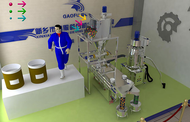 制粒后,上層安裝16目篩網,下層裝30、40目篩網(根據廠家要求不同),篩上篩下再次通過真空上料機進入制粒機制粒,中間合格品進到料倉去進行包裝。推薦設備GFZX顆粒丸劑篩!